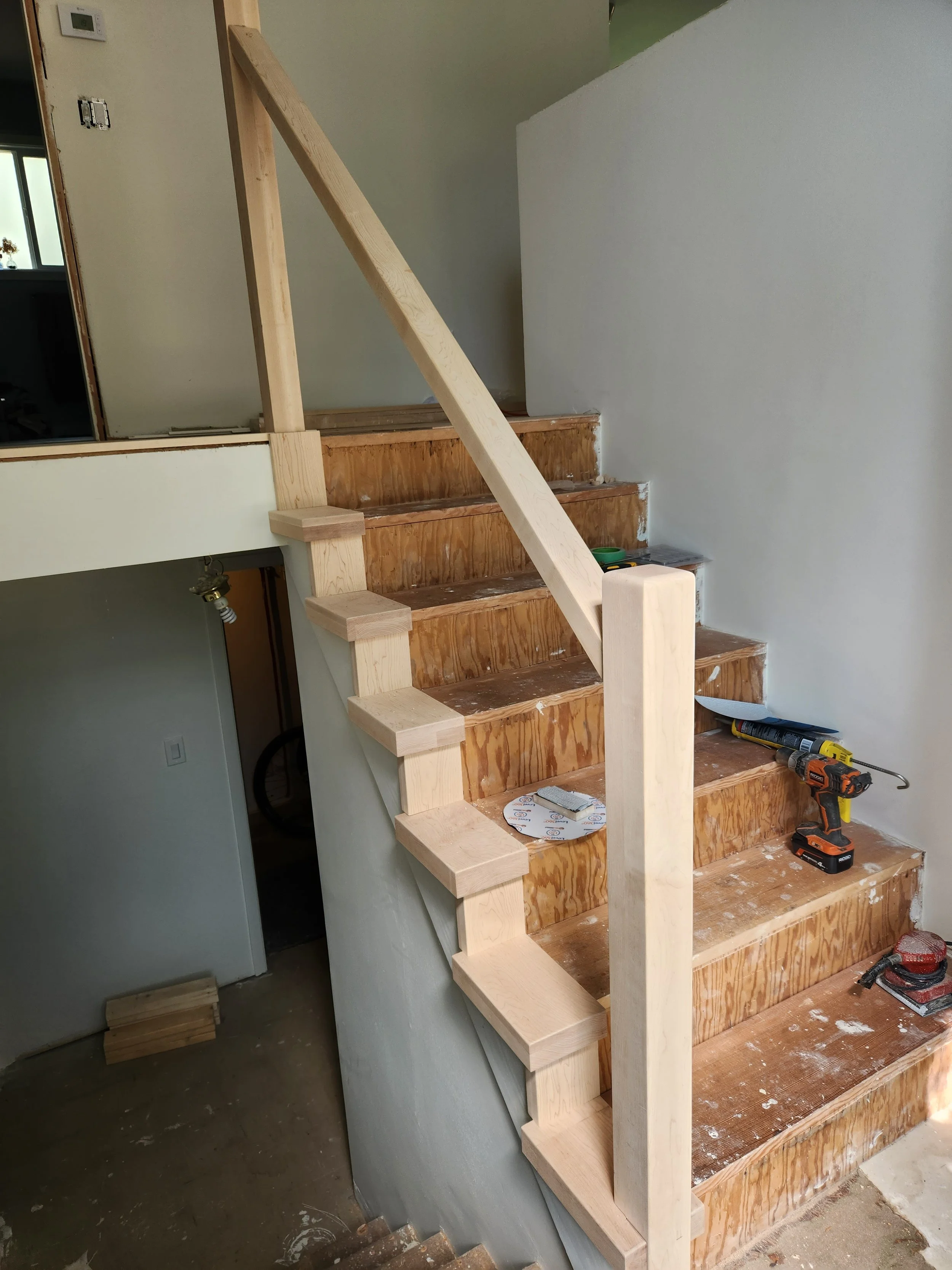 Updating a home with modern railings and finishing. Old railing removed Handrail installed Spindles installed